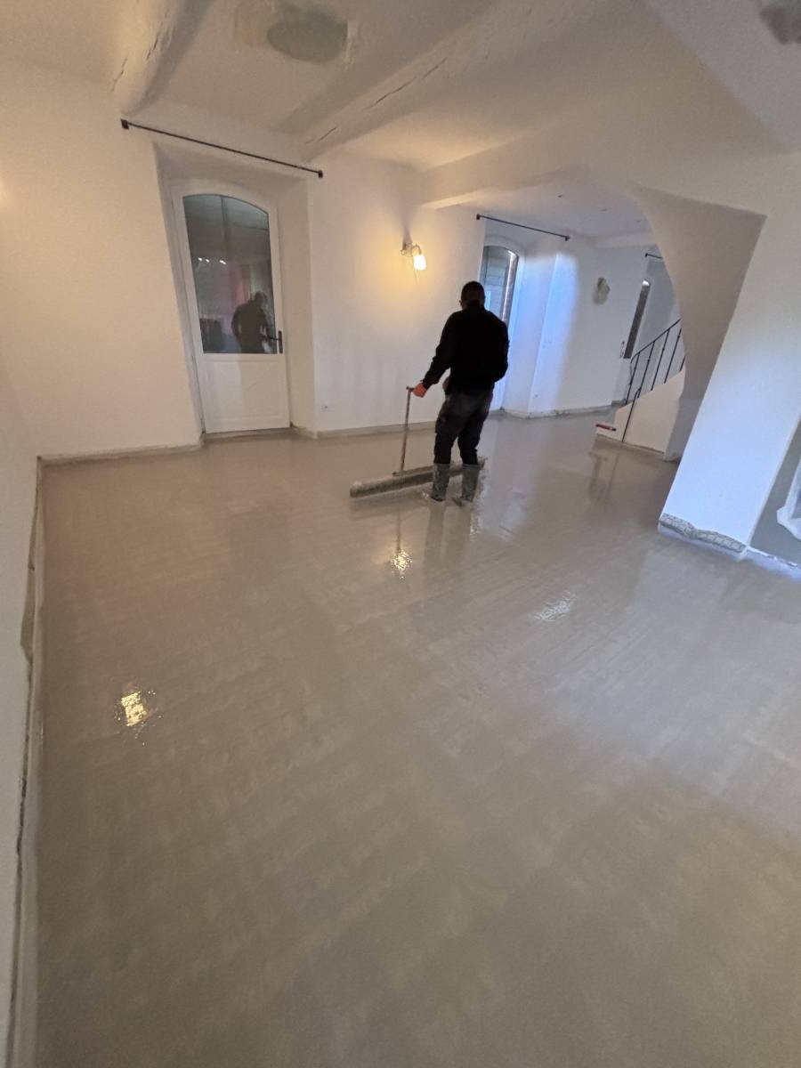 Pour ce chantier situé à Salon-de-Provence (géolocalisation), PSEC réalise un service complet de création de sol clé en main sur une surface de 138 m². Nos équipes interviennent dès la phase de démolition, étape indispensable pour repartir sur une base saine et garantir la qualité du futur ouvrage. Cette phase prépare l’intégration des produits techniques essentiels au bon fonctionnement du futur sol.