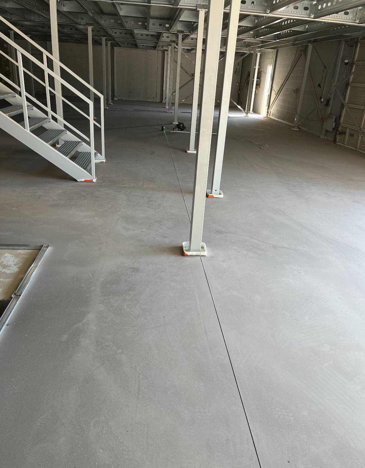 Sur ce chantier de 824 m² à Aix-en-Provence, PSEC est intervenue pour réaliser un réagréage autolissant industriel sur un primaire époxy sablé. Cette préparation assure une adhérence optimale entre le support et le produit de finition, garantissant la pérennité du revêtement dans le temps, même en conditions d’exploitation intensives.